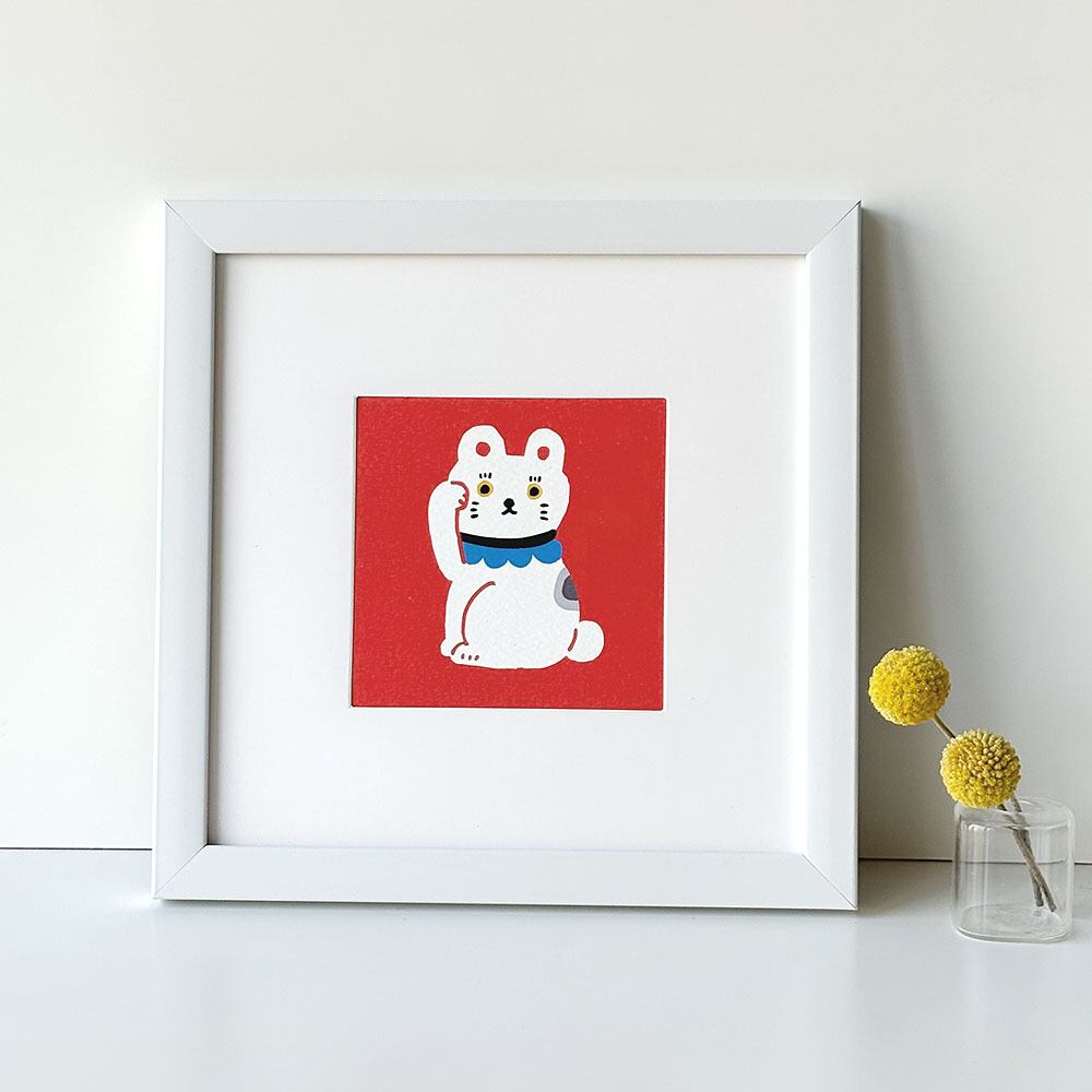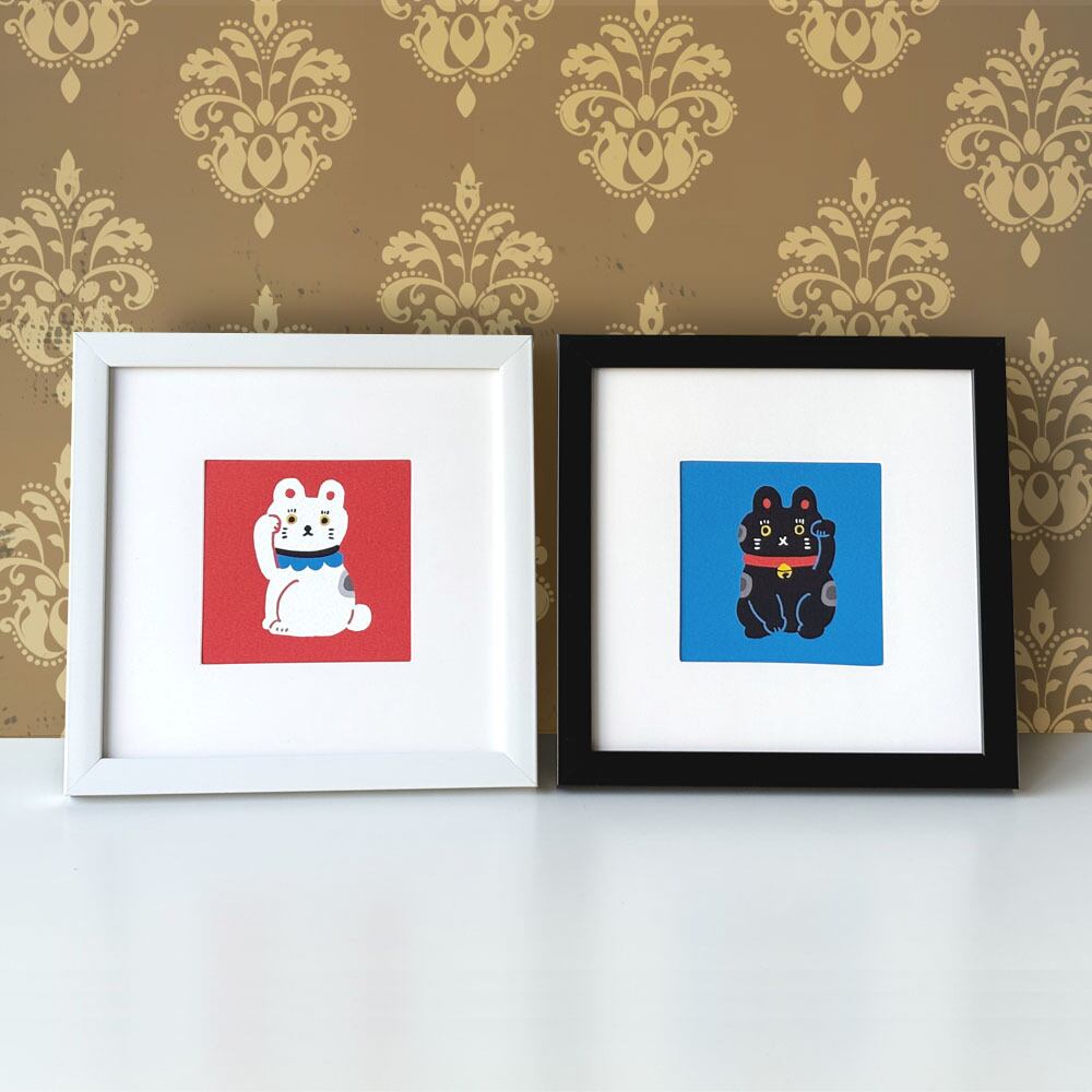 白猫 or 黒猫が選べる、招き猫の額付きイラストです