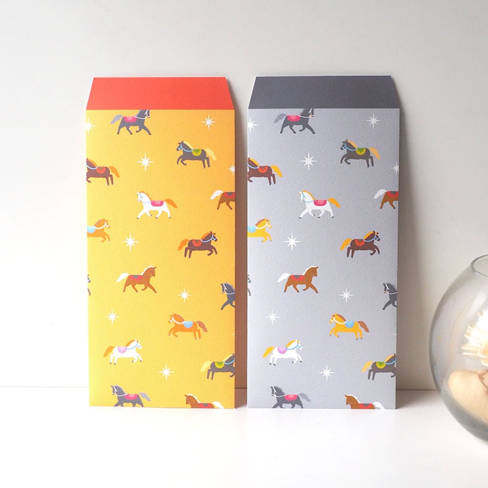 お馬さんが翔け回るちらし模様の万型お祝い袋です