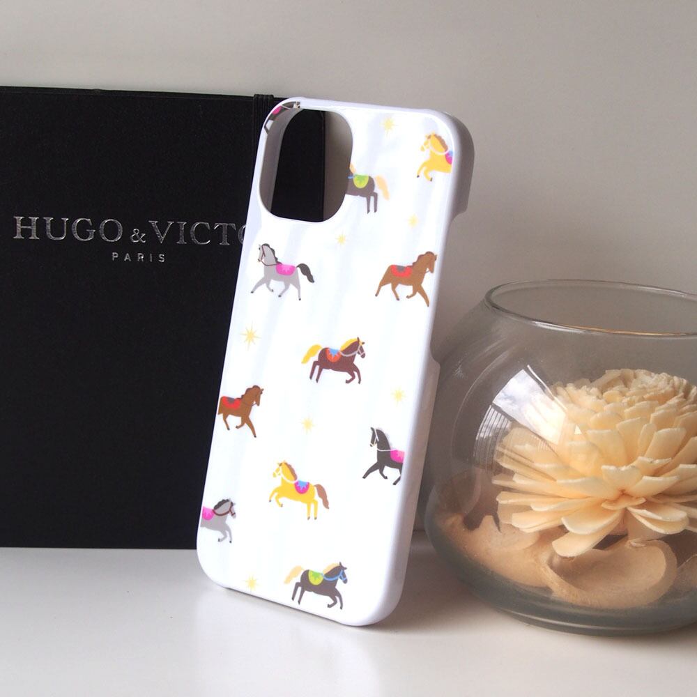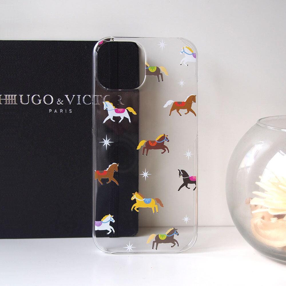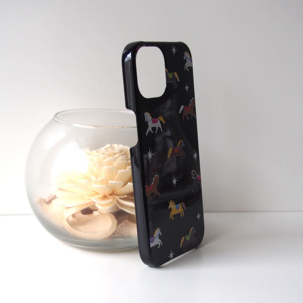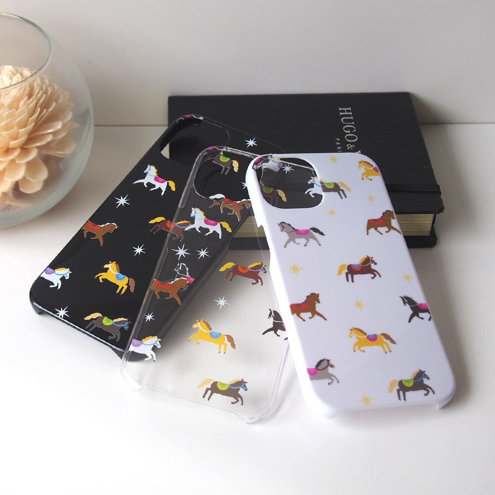 お馬さんが翔け回るちらし模様のプラスマホケースです