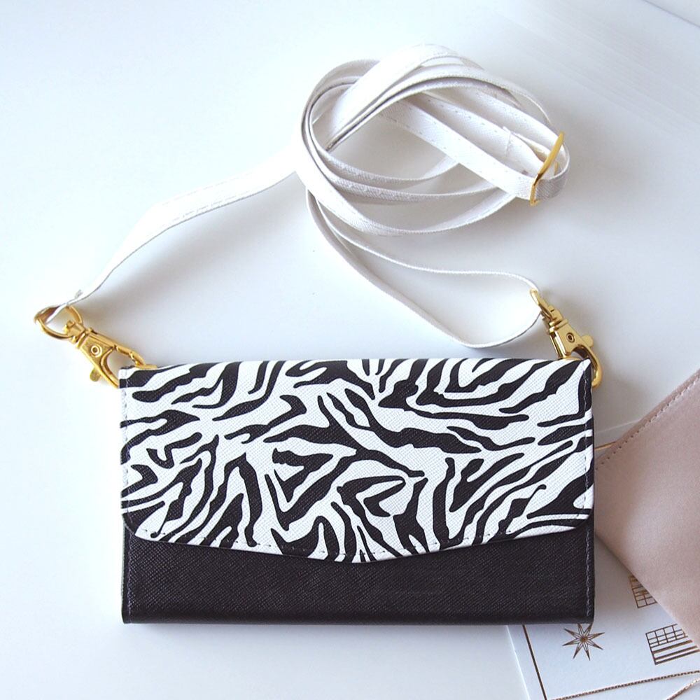 三つ折り手帳型スマホケース【ゼブラ柄】ショルダーストラップ付き