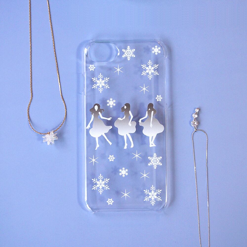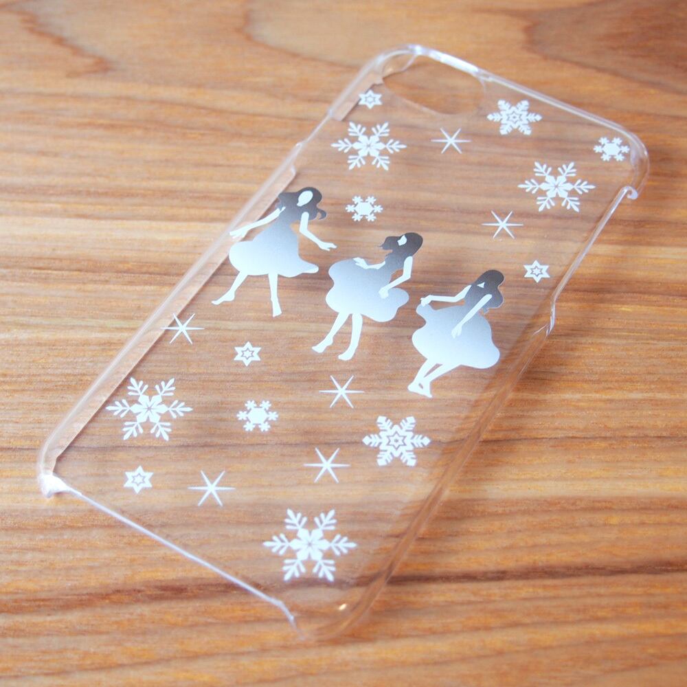 雪の結晶と共に舞う女の子のシルエットがスマホに映えるクリアスマホケースです。