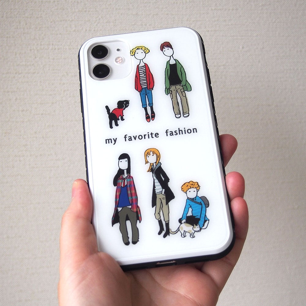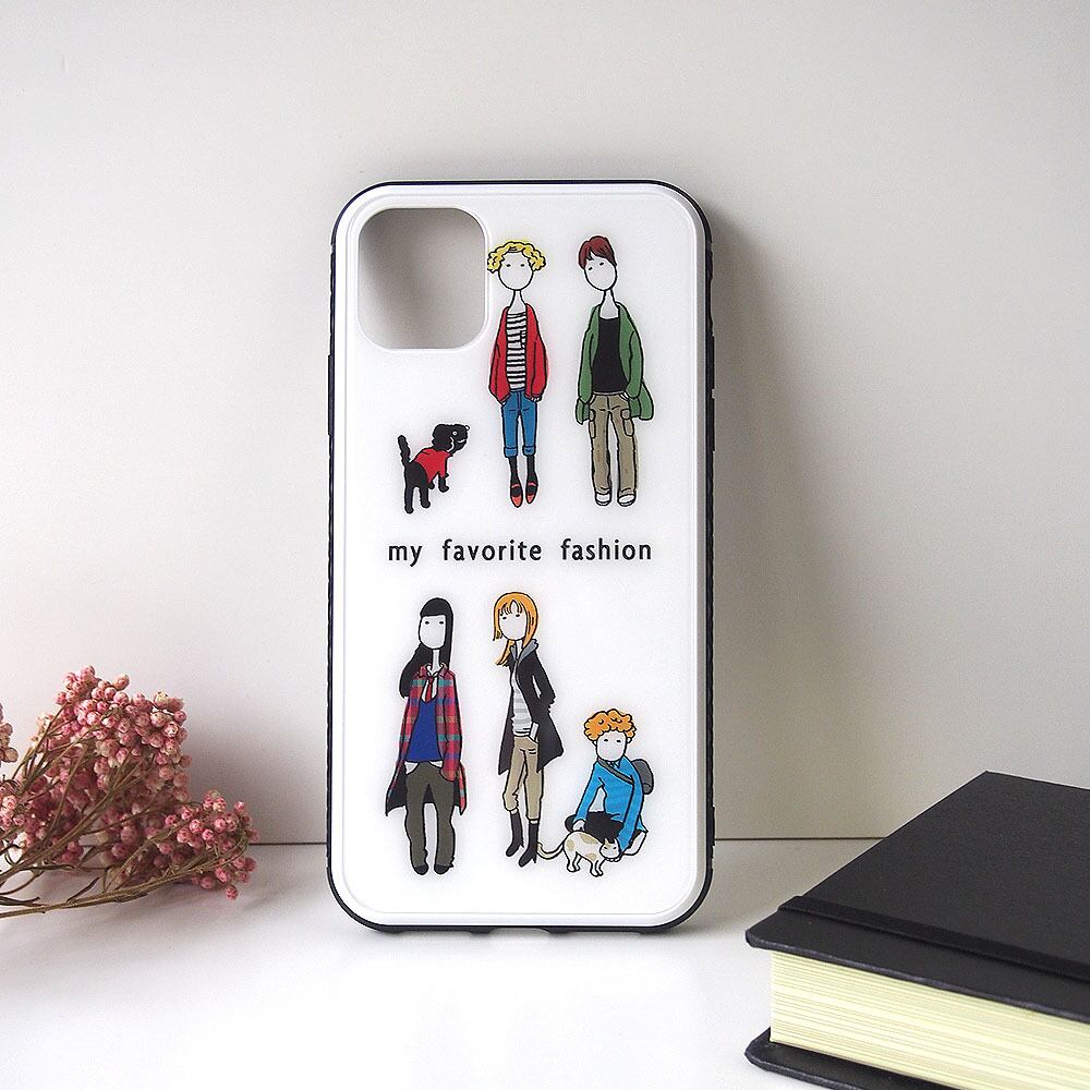 お気に入りのファッションイラストの強化ガラスのスマホケース。