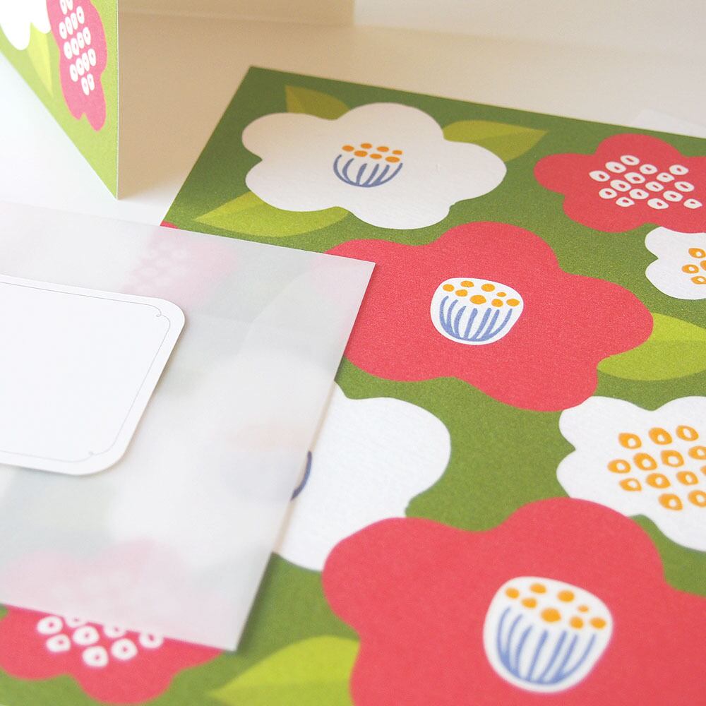 和モダンな椿柄が透けて見えるユニークなレターセット