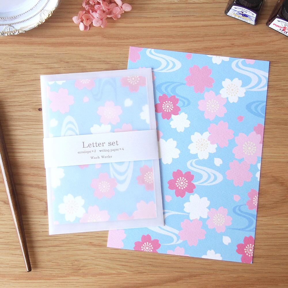 透ける桜流水のレターセット