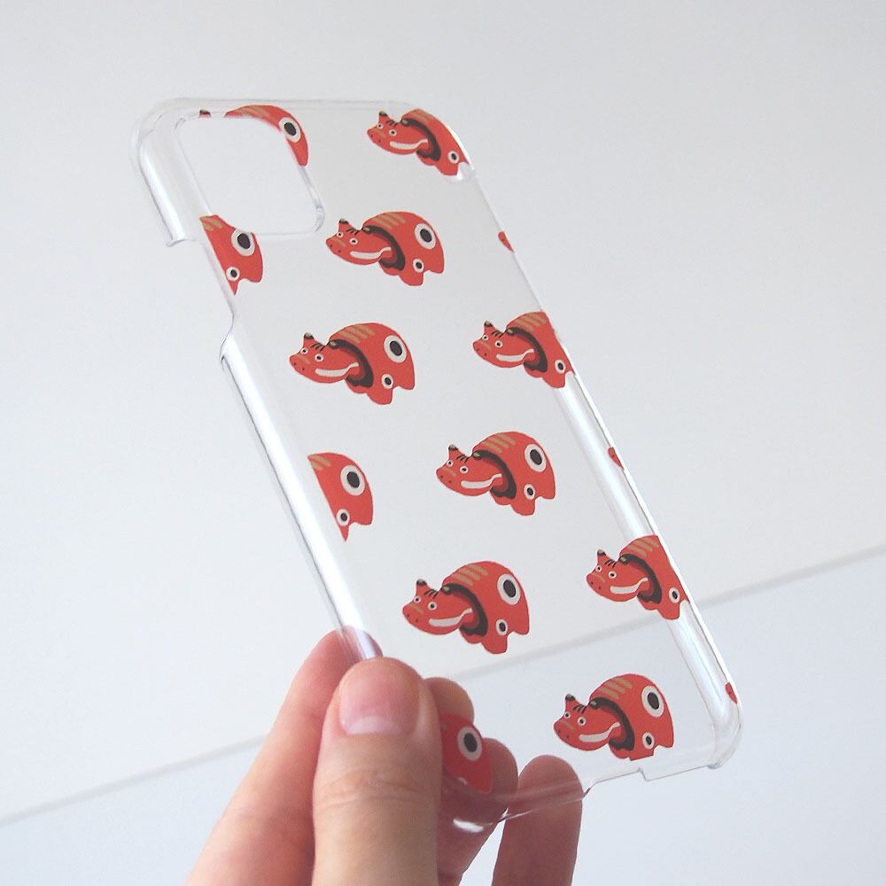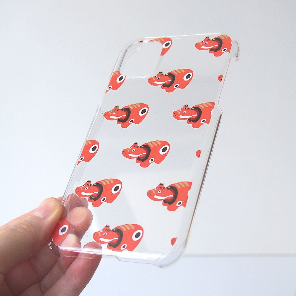 縁起ものの赤べこが並ぶ模様が愛らしいクリアスマホケースです。