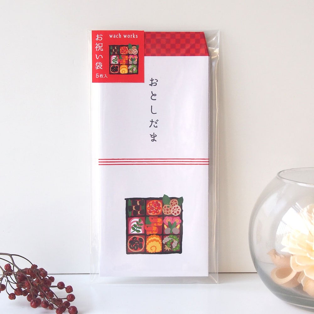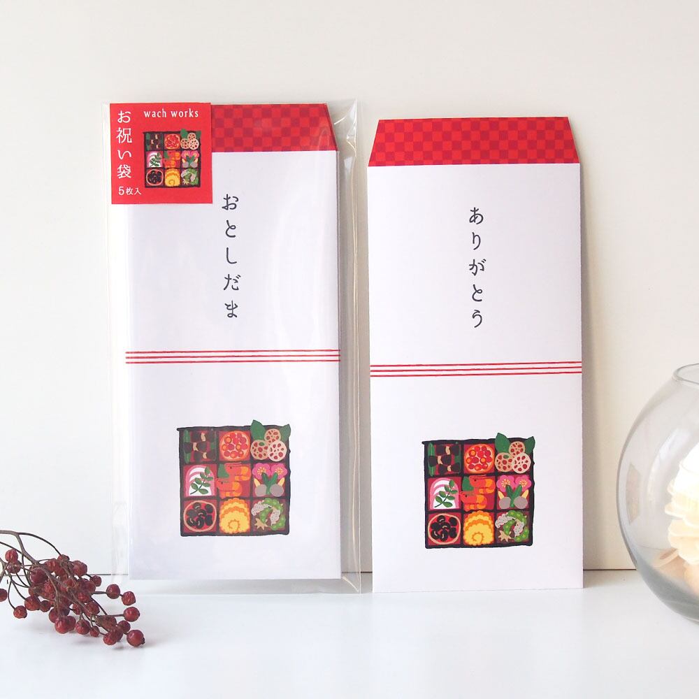 『おせち料理』の万型お祝い袋5枚セットです